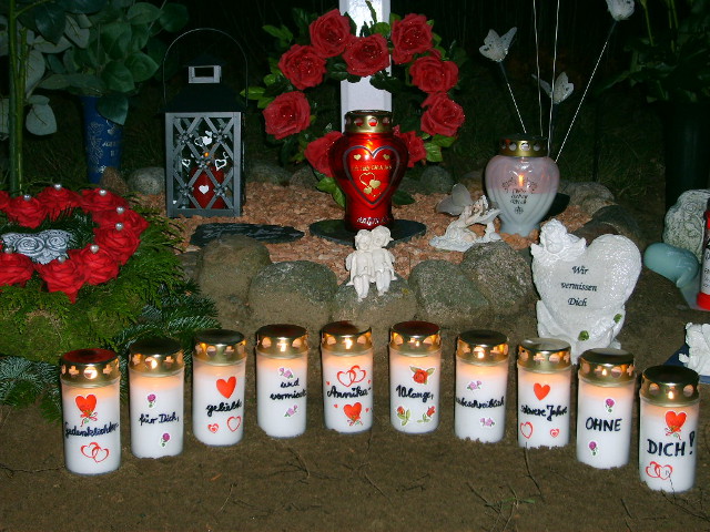 Leider gab es in all den Jahren immer wieder an Annikas Gedenkstelle sehr traurige Erfahrungen für uns zu machen: Über die Jahre wurden uns immer wieder Engel, Herzen, Laternen und Blumen dort gestohlen.