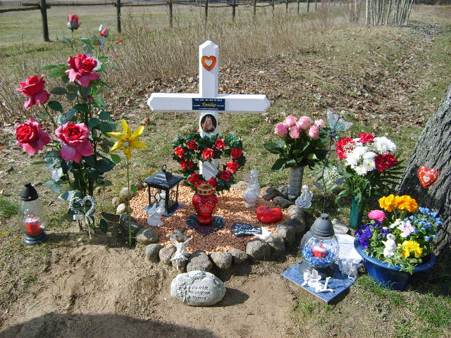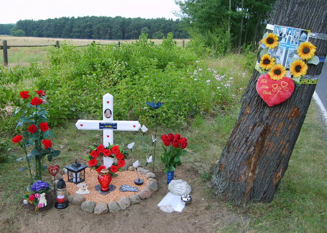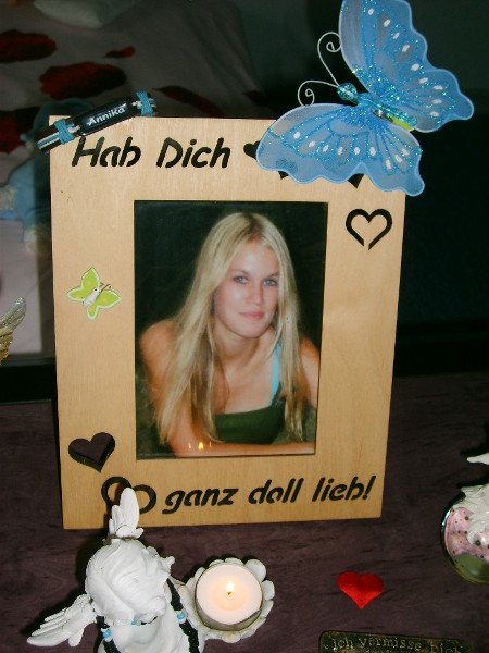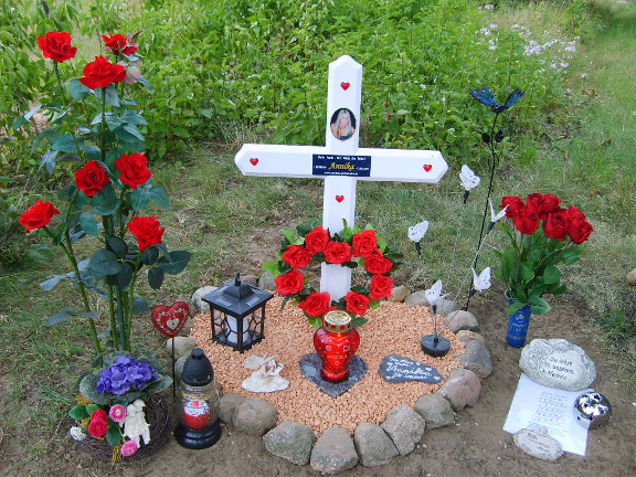 Ein wohl alkoholisierter junger Mann ist gegen den Baum und dann quer über Annikas Gedenkstelle gefahren – dem jungen Mann soll zum Glück nichts passiert sein, aber er hat Annikas Gedenkstelle wirklich völlig zerstört. Das Gedenkkreuz war umgefahren und es war auch sonst alles verwüstet. Es war alles kaputt - alle Engel, Laternen, Herzen, Schmetterlinge, die Windmühle, das Kreuz, die Blumen – ALLES!